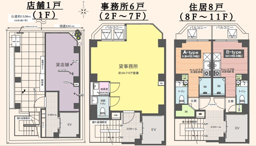 | 房型 | 店鋪×1 事務(wù)所×6 住居×8 | 朝向 | / |