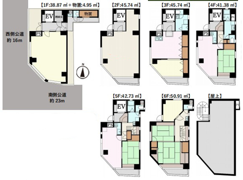 1988年6月建成,永久產權,符合新抗震標準。位于東京都臺東區,JR線、東京地下鐵日比谷線等多條線路可以利用。大樓鋼筋混凝土造6層,西南角地,西側、南側分別寬約16m、23m道路,設有電梯,2023年末實施了屋頂防水涂裝及部分共用部、部分室內翻新等,1F、2F店鋪、事務所,3F住居或事務所,4F住居、5F~6F躍層住居,配套設備齊全,目前部分出租中,詳情歡迎咨詢。海外客戶可以申請日本銀行貸款購房,目前有兩種方式:1.需要在日本設立公司,以法人名義購買,貸款額度約60-70%、還款周期25-35年、貸款利率1.5%起。2.個人名義購買,海外客戶可以申請日本個人抵押貸款購房,不需要設立公司,貸款額度約50-60%,還款周期15-25年,貸款年齡65歲以內,貸款額度不能低于2000萬日元,貸款利率2.7%起。