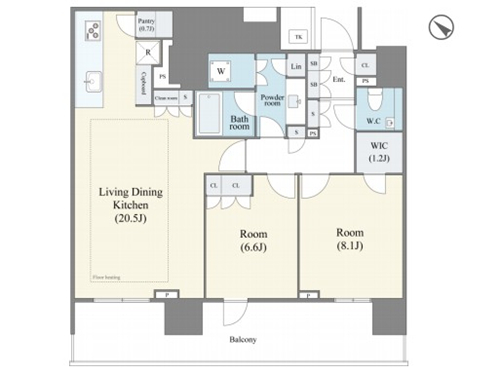 2023年11月建成的大規模公寓樓,永久產權,符合新抗震標準。位于東京都中央區,東京灣中心,近鄰都營大江戶線【勝どき】站,另外也有巴士可以利用。公寓樓地上18層付地下1層,周邊購物、學校、保育設施、公園等生活設施充實,公寓樓24小時有人管理,設置門禁、快遞箱,可飼養寵物(有細規),公寓位于11層,2室1廳新居,室內生活配套設備齊全,客餐廳有地暖,所有房間都朝向陽臺,采光良好,衛浴獨立,詳情歡迎咨詢。海外客戶可以申請日本銀行貸款購房,目前有兩種方式:1.需要在日本設立公司,以法人名義購買,貸款額度約60-70%、還款周期25-35年、貸款利率1.5%起。2.個人名義購買,海外客戶可以申請日本個人抵押貸款購房,不需要設立公司,貸款額度約50-60%,還款周期15-25年,貸款年齡65歲以內,貸款額度不能低于2000萬日元,貸款利率2.7%起。