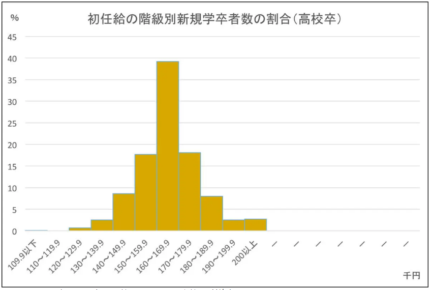 說到畢業(yè)生,大家的第一反應(yīng)是大學(xué)畢業(yè)生,其實在日本沒有讀大學(xué),高中畢業(yè)后就進(jìn)入社會工作的人群也不少,所以這里的畢業(yè)生也包括高中畢業(yè)。根據(jù)日本厚生勞動省的數(shù)據(jù)統(tǒng)計,日本高中畢業(yè)生第一份工作的起薪為11萬日元到20萬日元左右,平均工資16.5萬日元左右(約合1萬人民幣)。男性為16萬7千日元,女性為16萬2千日元,工資水平多集中在16萬日元左右,約占4成( 39.2% )的人是在這一工資區(qū)間。由此看出,日本人在高中畢業(yè)后的起薪相差不大,起點比較平均。