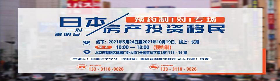 2021年5月24日至2021年10月19日在北京國貿寫字樓舉辦一對一日本房產投資、日本投資簽證、日本高度人才簽證、日本工作簽證、日本留學簽證一對一講解分析會。地址:北京市朝陽區建國門外大街1號國貿寫字樓1座11層1118-16室。