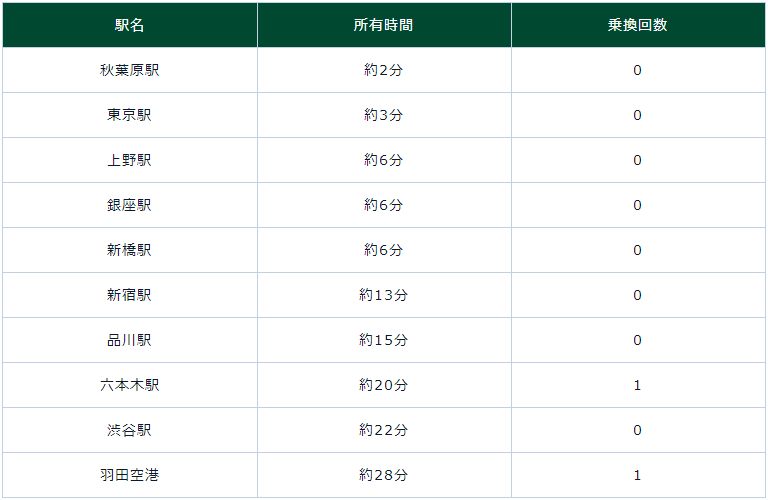 從神田站到都內(nèi)各站都很方便,幾乎都可以直達(dá)或只換乘一次即可到達(dá)。神田站還有直達(dá)成田和羽田機(jī)場的機(jī)場大巴,大約步行15分鐘即可到達(dá)東京站,有多條新干線線路可以利用,可以說交通便利性非常優(yōu)秀。
