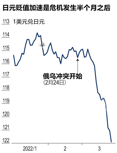 然而讓人沒(méi)想到的是2022年在太平盛世的時(shí)代竟然發(fā)生了俄烏沖突,雖然不是世界級(jí)的軍事行動(dòng),但也足以影響全球。在這種背景下,此前剛剛加息的美元就成了香餑餑,拋售手中外幣資產(chǎn)購(gòu)買(mǎi)美元的情況顯著增加。而相應(yīng)的,以日元為代表的外幣則出現(xiàn)了貶值的情況。在3月28日的外匯市場(chǎng),日元兌美元匯率一度貶值至1美元兌125日元以上,跌至2015年8月以來(lái)的最低水平。