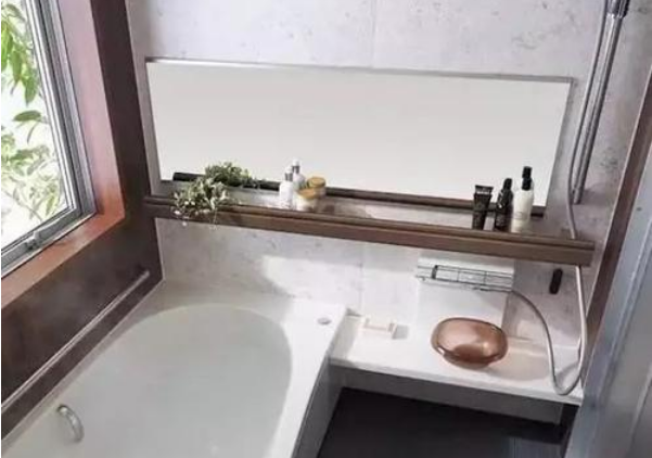 以前,大家通常會在浴室的墻面上放置一面鏡子,不僅可以讓人照鏡子,鏡面效果還可以使浴室看起來寬敞。不過在清掃時,鏡子周邊卻比較難打理,還會擔心水氣進入到鏡子里。隔一段時間還要用檸檬酸清理鏡子,很耽誤功夫,實在是太麻煩了。所以,現在為了保持浴室更簡潔、好清掃,有的浴室也選擇不裝鏡子,特別是小浴室里,沒有鏡子也并沒有感覺有什么不方便。