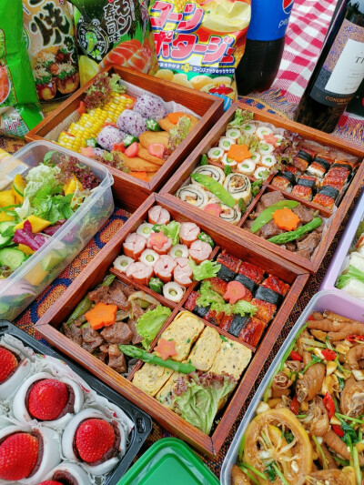 日本人還喜歡外出游玩時攜帶便當,幾個家庭或朋友聚在一起的時候,往往會在一起野餐,便當又可以體現(xiàn)個人品位和經(jīng)濟實力。在出游之前,日本人可能會花費大量的時間準備便當,如果自己的便當太簡單,往往可能會覺得失禮或可能被嫌棄。