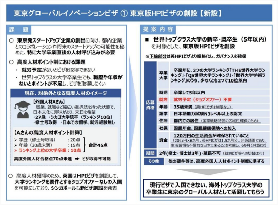 如果高度人才簽證適合在日本留學的畢業生的話,那么HPI簽證更適合非日本留學的畢業生。出于“戰略戰術”考慮,需要將這些畢業生留在東京都內居住。