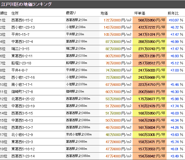 江戶川區(qū)最新地價動向