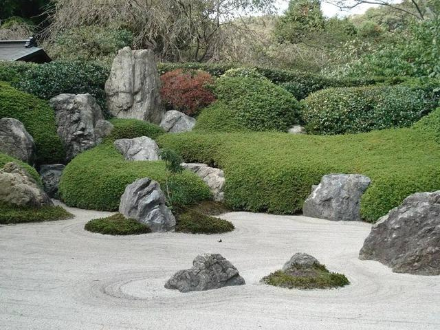 日本的庭院設計極其講究,主旨突出大奢至簡、道法自然,更注重禪修的意境。主要元素包括主題植物、巖石、砂礫、石燈籠以及水系等。