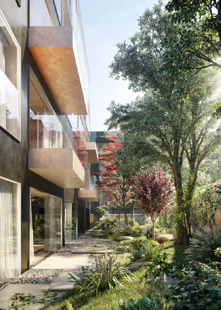 不過這種傳統的審美和庭院的設計,隨著日本國內越來越國際化的開放態度也有所轉變。以位于表參道的“青山雅筑”項目的庭院設計為例,在庭院綠植的選擇上除了符合日本庭院審美的標準上,還融合了西方的哲學之美,營造出了一幅按照四季變化所能呈現出不同美景的庭院景觀圖。櫻花的粉色、松柏的綠色、楓葉的紅色以及秋葉的黃色、竹葉的翠色等等,足不出院,即可享受到自然的美好。