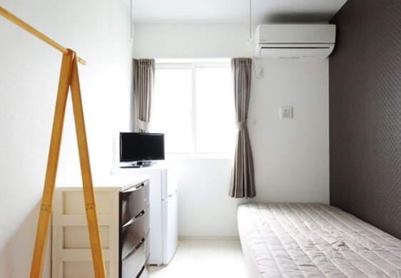 單間的情況比較多,租客擁有獨立的臥室空間,有的單間還配備電冰箱、電視、獨立衛生間等,有點類似簡易旅館。這種單間比較適合長期居住,月租金約8萬日元左右。