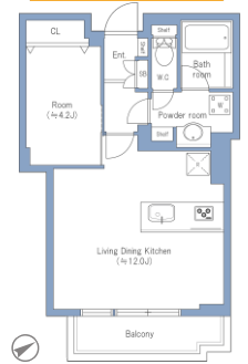 1DK:帶飯廳和廚房的單間公寓房,飯廳和廚房通常是一體。