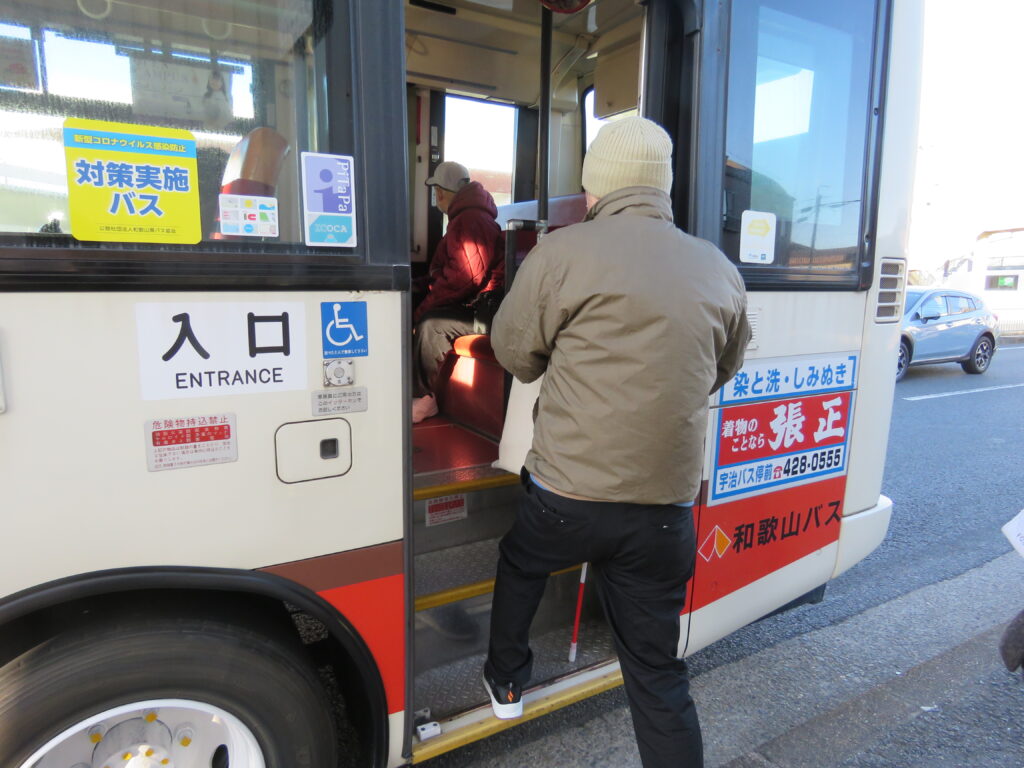 因?yàn)橐暳Φ脑颍狡橄壬习嗟姆绞揭矎尿T車改為了乘坐公共汽車。這對(duì)于山崎先生來說,就連尋找汽車車站都變得非常困難,更何況乘巴士上班,更是不小的挑戰(zhàn)。不過非常幸運(yùn)的是,在山崎先生在汽車站等車時(shí),一個(gè)和歌山大學(xué)附屬小學(xué)的女孩子就對(duì)他說,“巴士來了哦”。從那以后,這個(gè)小女孩就一直護(hù)送著山崎先生上班,告訴他巴士來了,引導(dǎo)他從前門上車,再幫他找到座位,車到站以后也會(huì)幫助他下車,這一舉動(dòng)一直持續(xù)到女孩小學(xué)畢業(yè)。