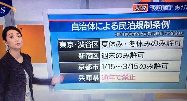 對于日本民宿業來說,民宿新法的出臺讓民宿終于取得了合法地位,所有居住用住宅可以在不取得旅館業許可的情況下,僅向政府提出申告就可以運營民宿。不過為了盡量維護本國人居住環境和酒店業的穩定,日本民宿新法對民宿經營進行了嚴格的限制,比如“可營業天數上限為180天”、“必須通過正式申請登錄”、“如果屋主沒有同住,必須委托第三方經營公司來管理”、“必須經過房屋管理委員會同意”等。而一部分房屋管理委員會等自制團體也對民宿經營者和設施周邊居民的糾紛表示部分警戒的態度,這些都在某種程度上也限制了一些偏遠地區的申報情況,讓民宿申報僅集中在東京、大阪、北海道等游客較多的地區。